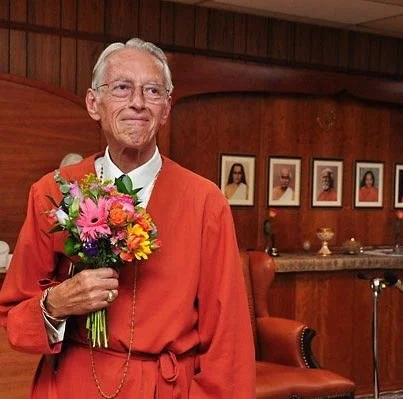 Roy Eugene Davis (right) with Yogacharya Ellen Grace O’Brian (left) at Center for Spiritual Enlightenment in San Jose, CA